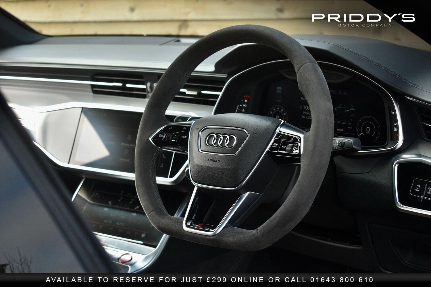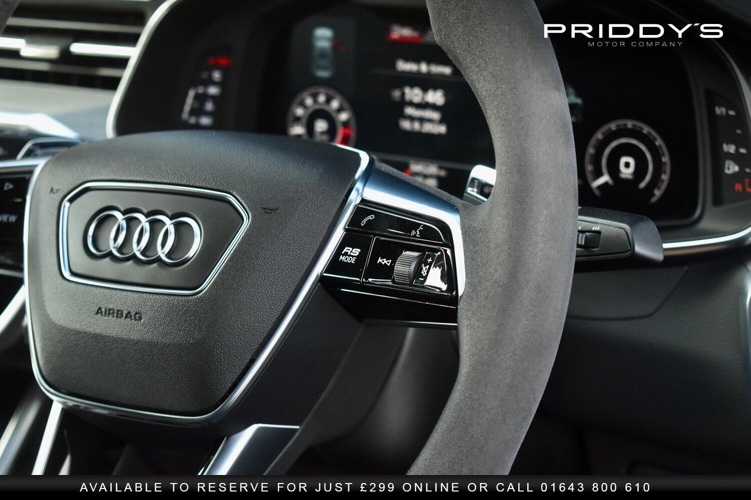 Out on the road it performs like the monster it is, the 4 litre turbocharged petrol engine giving you 600bhp at your disposal. The MHEV 48v with mild hybrid hardware allows engine off coasting abilities thanks to a small boot mounted battery. The 8 speed auto gearbox and the legendary Quattro 4 wheel drive system keep you planted on the road allowing you to use the car to its full potential and will get you to 60mph in just 3.6 seconds. The air suspension and Sports differential gives you and excellent ride soaking up the worst of the British roads without issue. If you'd like to get behind the wheel of this beautiful performance Audi please give the sales team a call and pop down for a test drive and we're confident you'll be very impressed.