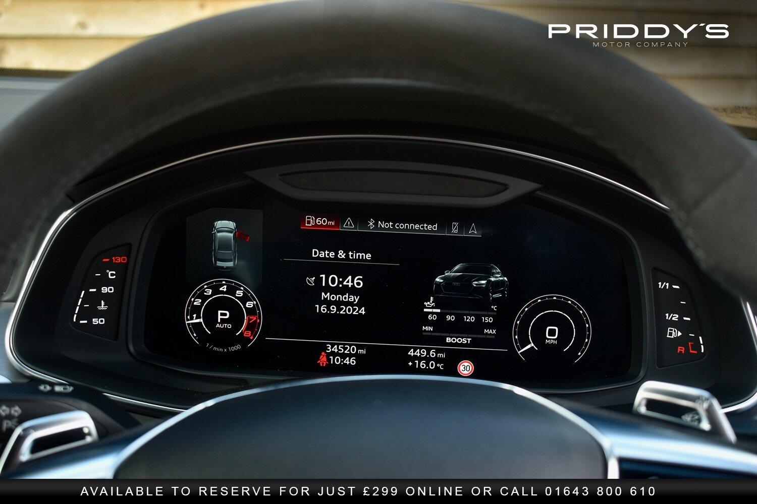 Currently showing just 33,481 miles and supported by a very nice 5 stamp service history from Audi Main Dealers, last serviced at 31,690 miles by Audi in Feb 2024 with this being a major service including spark plugs and brake fluid. The service team here at Priddy's have given it a full vehicle check at the current mileage and have reported it's in great shape. Tyres are premium Pirelli P Zero across both axles with good tread depths on both front and rear. Discs and pads are in good condition with plenty of pad sitting on healthy discs.