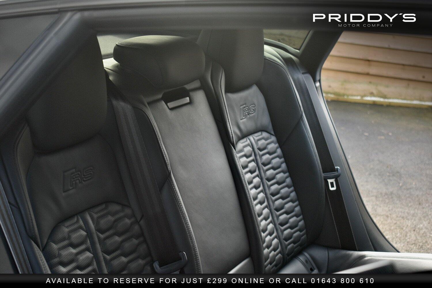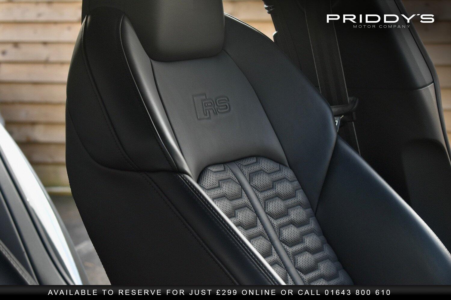 Audi do some of the best interiors on the market today, only the best materials are used and this cabin does not disappoint. You get wonderful climate electric memory quilted leather front seats with RS logo's, twin touchscreens including navigation, DAB radio, power fold mirrors, Alcantara flat bottom multifunction steering wheel, cruise control, Alcantara gear shifter, wireless charging, pdc front and rear with reverse camera assist, RS Mode and Drive Select, adaptive air suspension, Black headlining and Black seatbelts with White edging. The cabin really is a great place to be and you're never in any doubt that you're in a serious performance car.